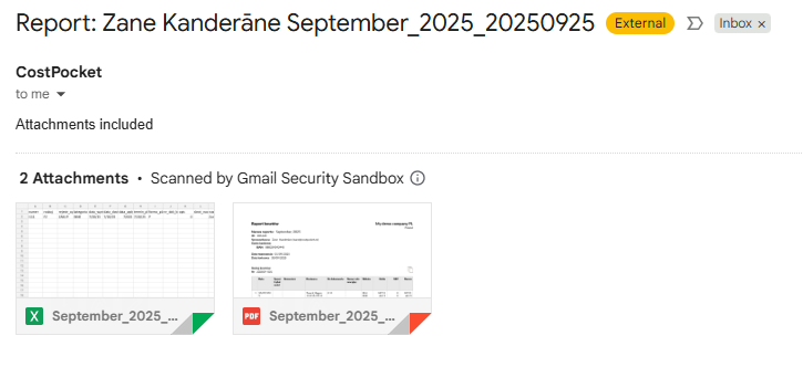 After submitting the report, you will receive an email from CostPocket containing the excel file you need to import into Comarch Optima.