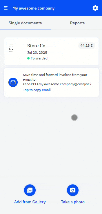 The invoice can also be issued to another company if you have multiple company accounts in CostPocket.