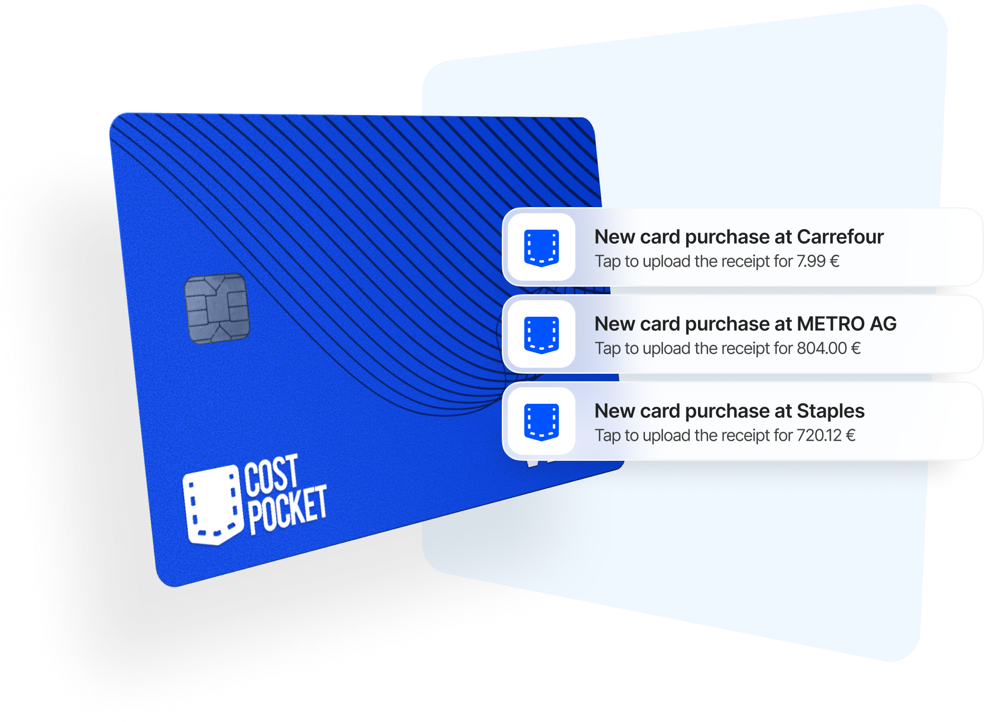 Use your card for business purchases and simply snap a photo of the receipt to upload it to CostPocket.