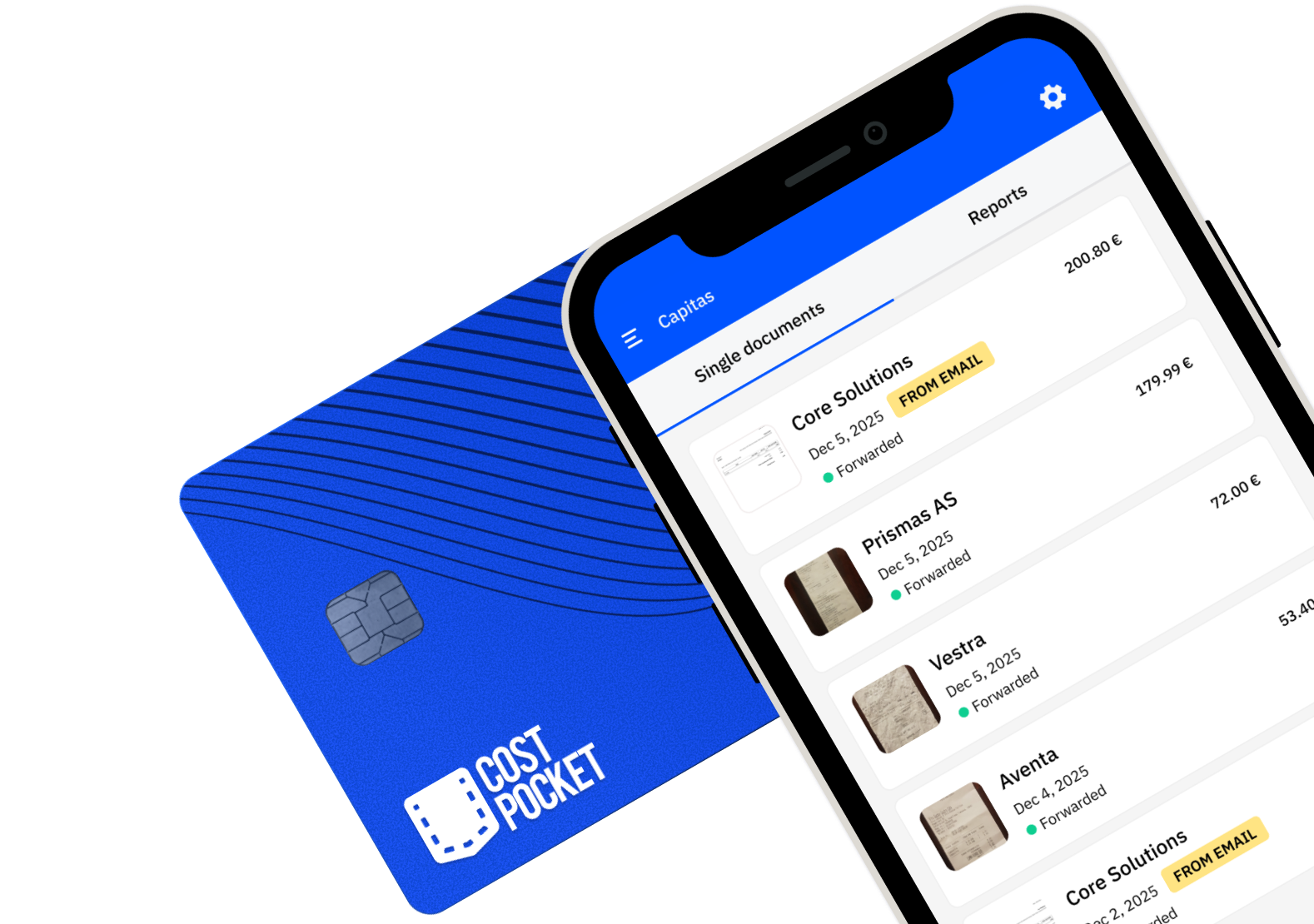 CostPocket automatically matches your receipts to the card transactions. Review them once and submit everything to accounting.