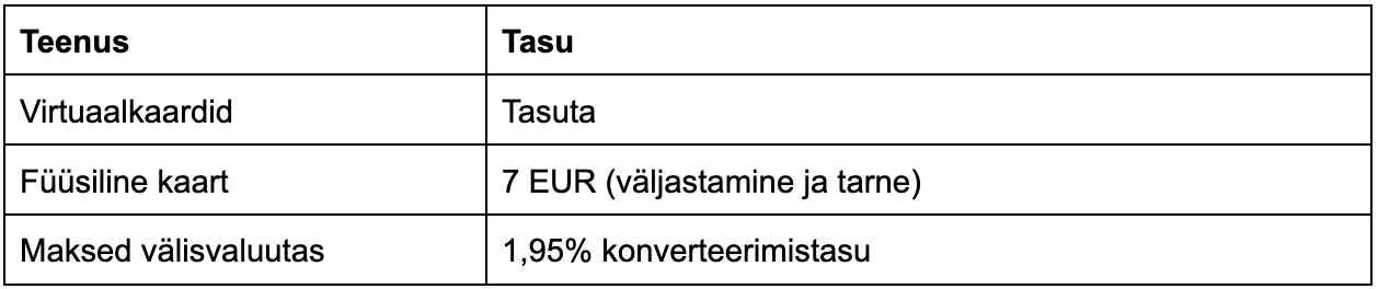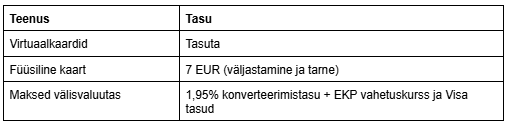 Enamikele kasutajatele on CostPocketi ettevõtte kaartide kasutamine tasuta.