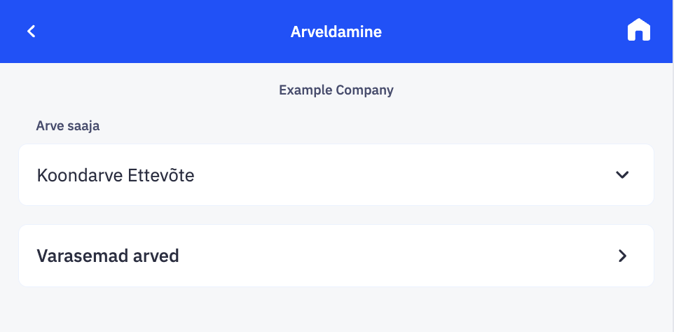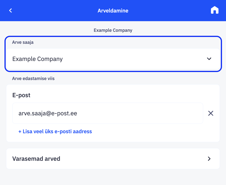 Rippmenüüst valige seejärel soovitud ettevõtte, kelle nimele arve tulema peaks: