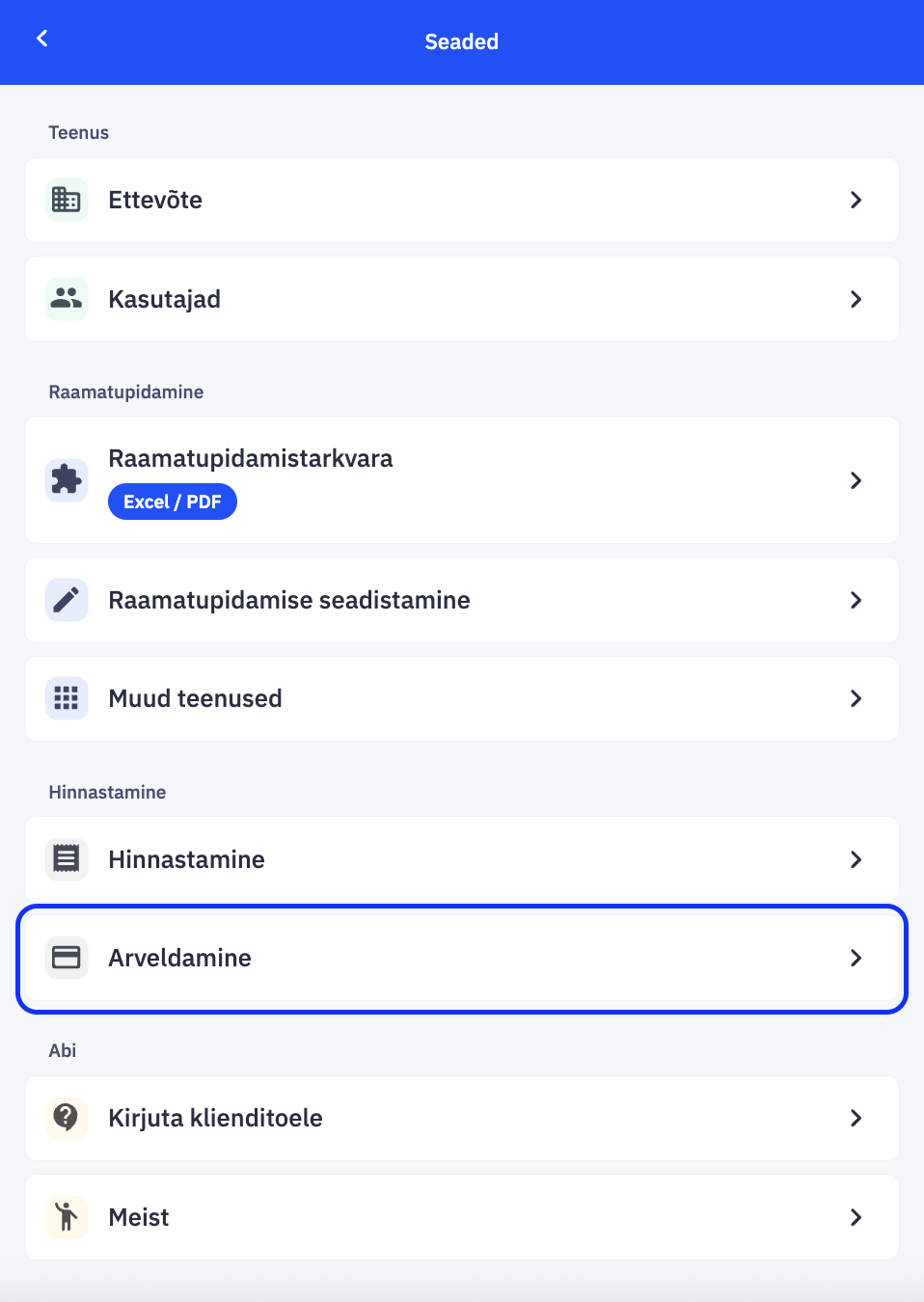 Kui te haldate CostPocketis mitut oma kliendi ettevõtet, siis on mõistlik kasutusele võtta koondarve funktsioon. Koondarve saate kohaldada Seaded > Arveldamine.