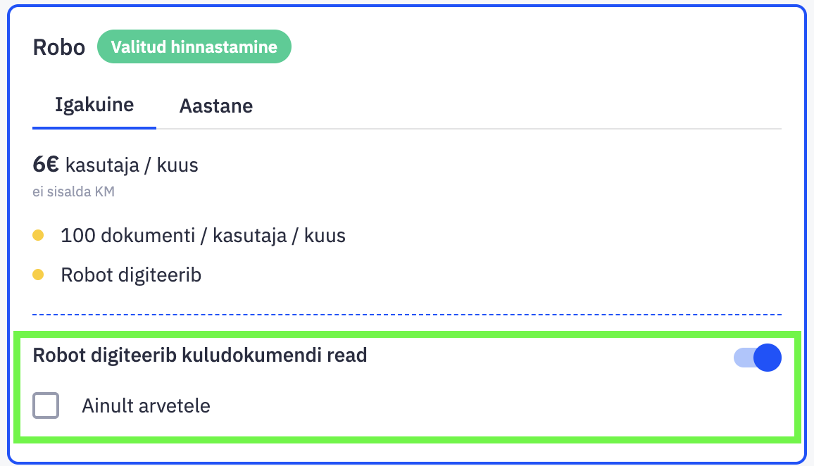 CostPocketi inimdigiteerimise teenusega saab digiteerida arveread, kui see teenus aktiveerida Seaded / Liidestamine ja teenused: