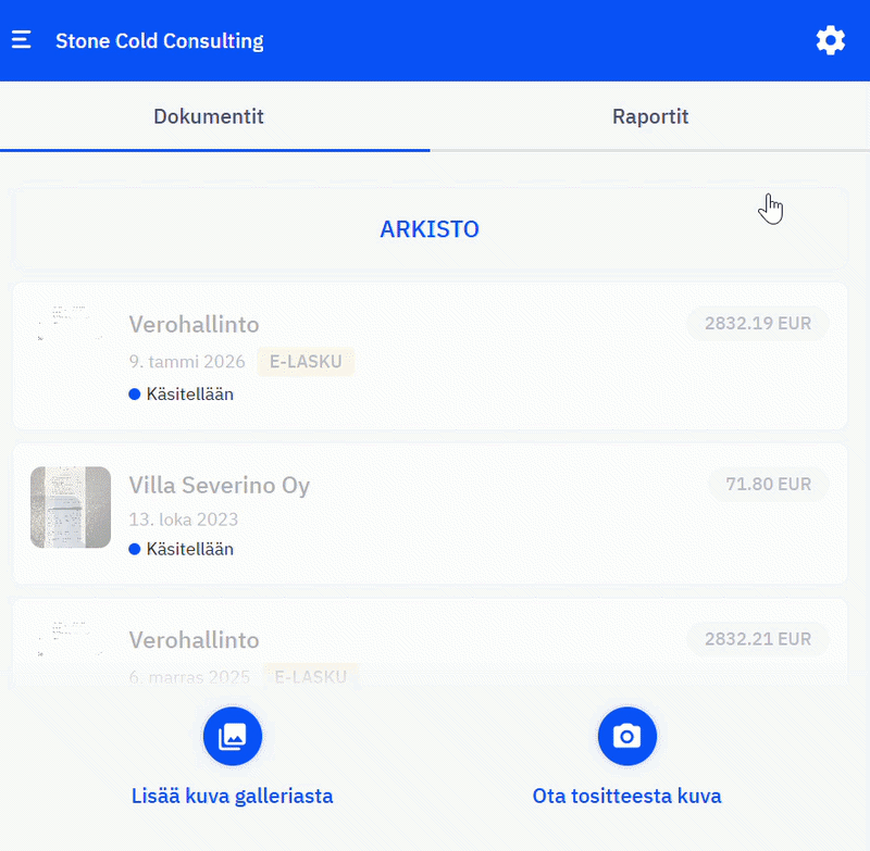 Alla kuvat sekä mobiilisovelluksesta että selainversiosta (cloud).