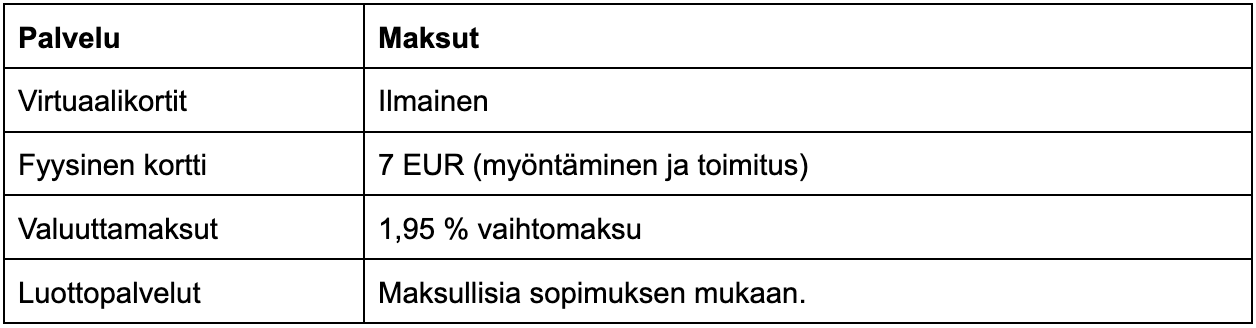 Vaikka palvelu on yleensä ilmainen, on muutamia erityiskuluja: