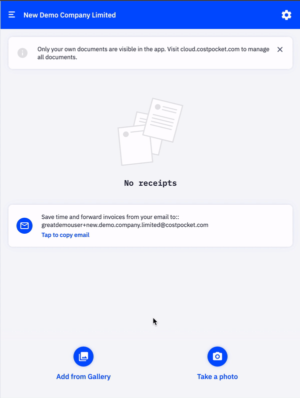 Kun pääkäyttäjä kutsuu sinut CostPocketiin, sinut lisätään automaattisesti yrityksen tilille.
